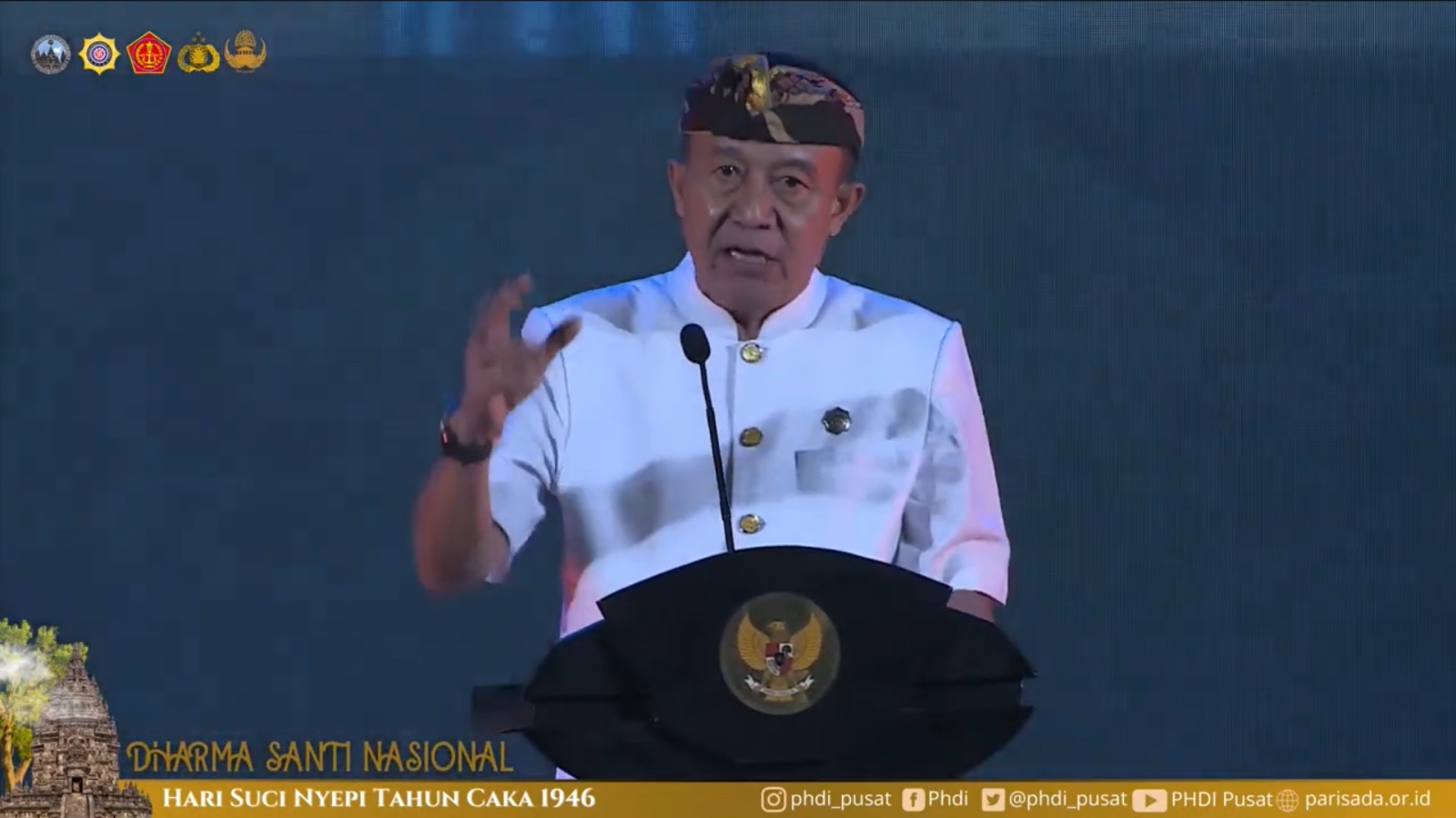 “Hari-hari keagamaan yang pertama hari Suci Nyepi, selamat atas hari Suci Nyepi bagi umat Hindu Dharma dimanapun berada,” imbuhnya