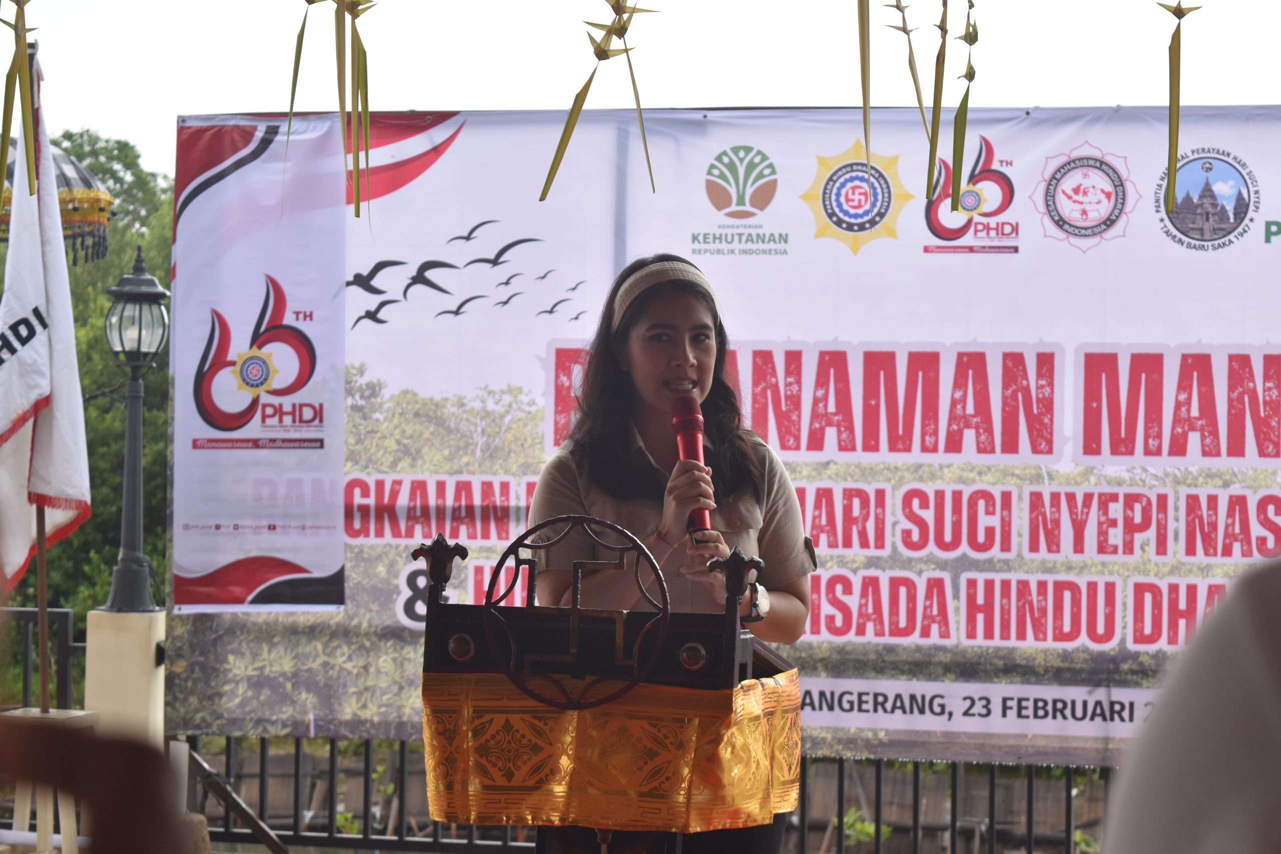 Turut hadir dalam kegiatan ini Wakil Menteri Pariwisata NI Luh Puspa, Direktur Pemulihan Ekosistem dan Bina Areal Preservasi Kementerian Kehutanan, Jefri Susyafrianto, Ketua Umum PHDI Mayjend (Purn) Wisnu Bawa Tenaya.